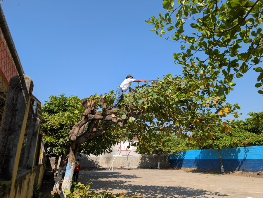 Realizan poda de árboles en Escuela Primaria de la colonia San Miguel