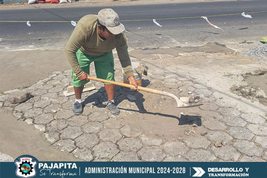 Reparan hundimiento de adoquines en Cantón El Rastro