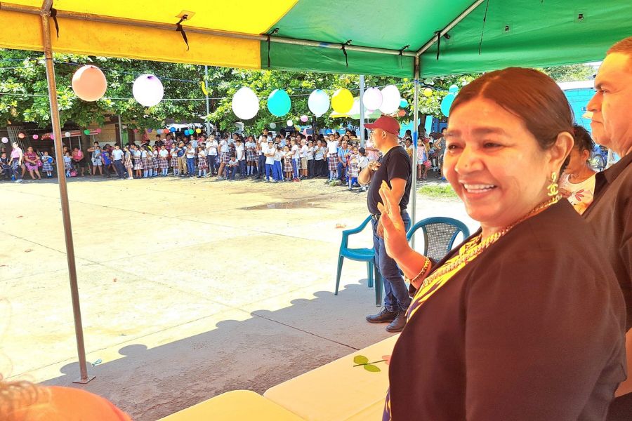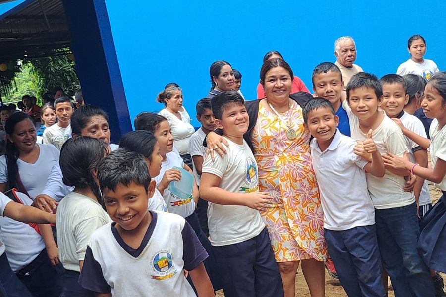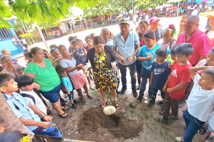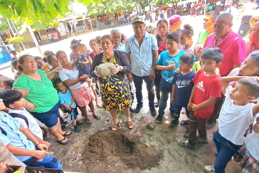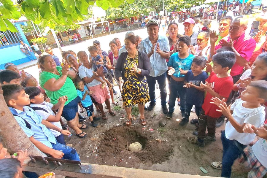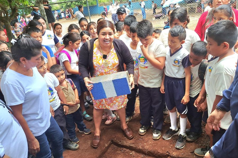 Alcaldesa de Pajapita coloca primer block para proyecto de mejoramiento de escuela en Cantón San Francisco