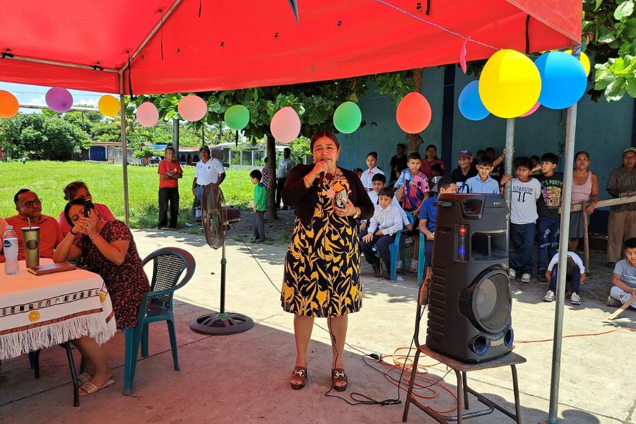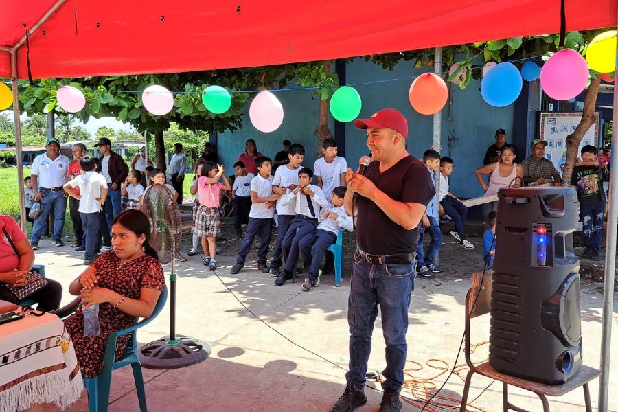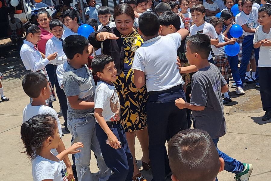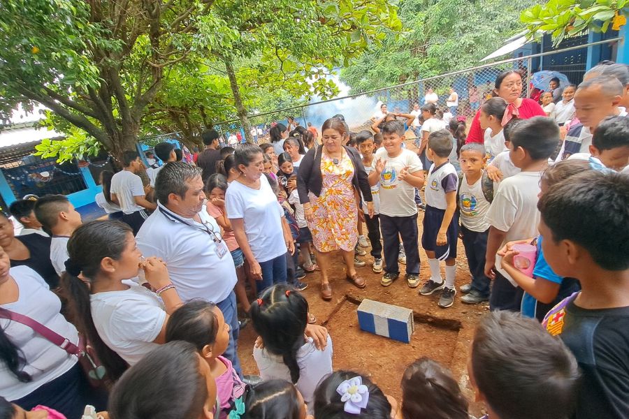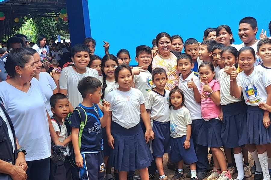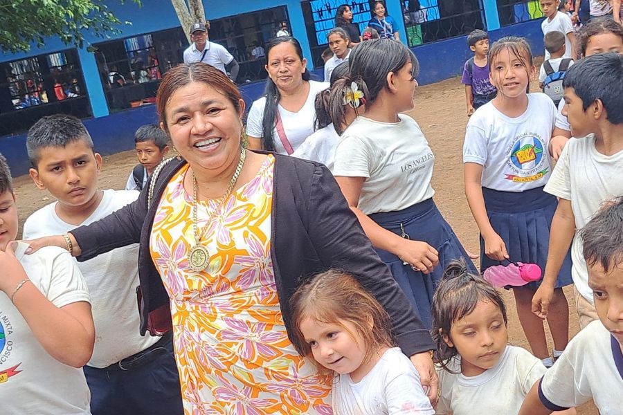 Alcaldesa de Pajapita coloca primer block para proyecto de mejoramiento de escuela en Cantón San Francisco