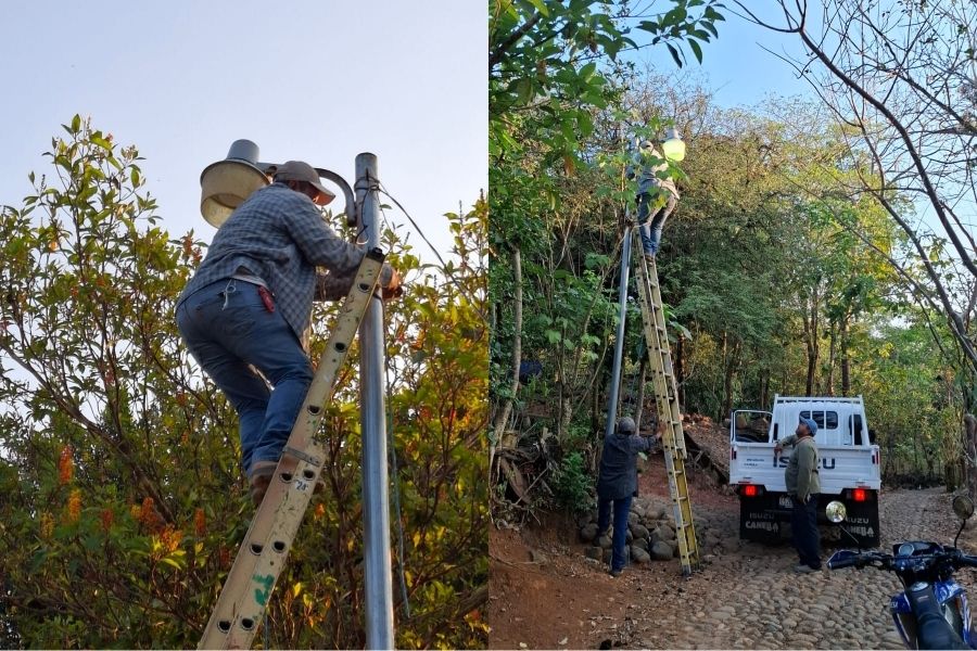 Alcaldesa impulsa mejoras en el alumbrado público en comunidades de Nahuatán y Pajapita