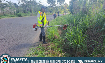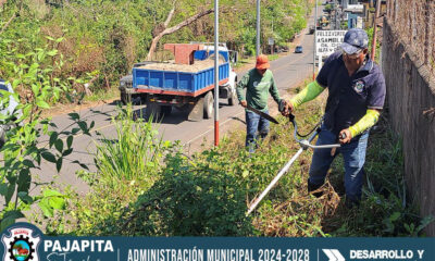 Con el propósito de evitar los botaderos de basura, personal municipal, realiza el chapeo de la maleza en la ruta a Nuevo Progreso, a la altura...