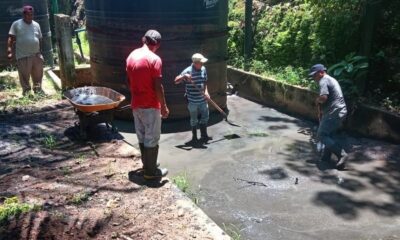 Personal municipal realiza trabajos de limpieza y cambio de los contenedores en la planta de tratamiento de aguas residuales ubicada en la colonia Nueva Pajapita El...