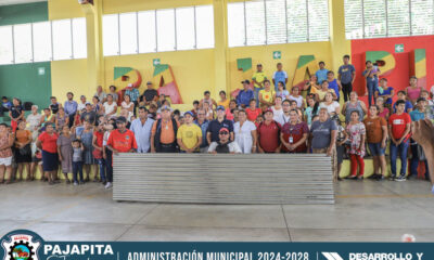 La Alcaldesa Municipal e integrantes de su Concejo realizaron la entrega de un lio de lámina acanalada, costaneras y molinos a pajapitenses de aldeas, caseríos, cantones...